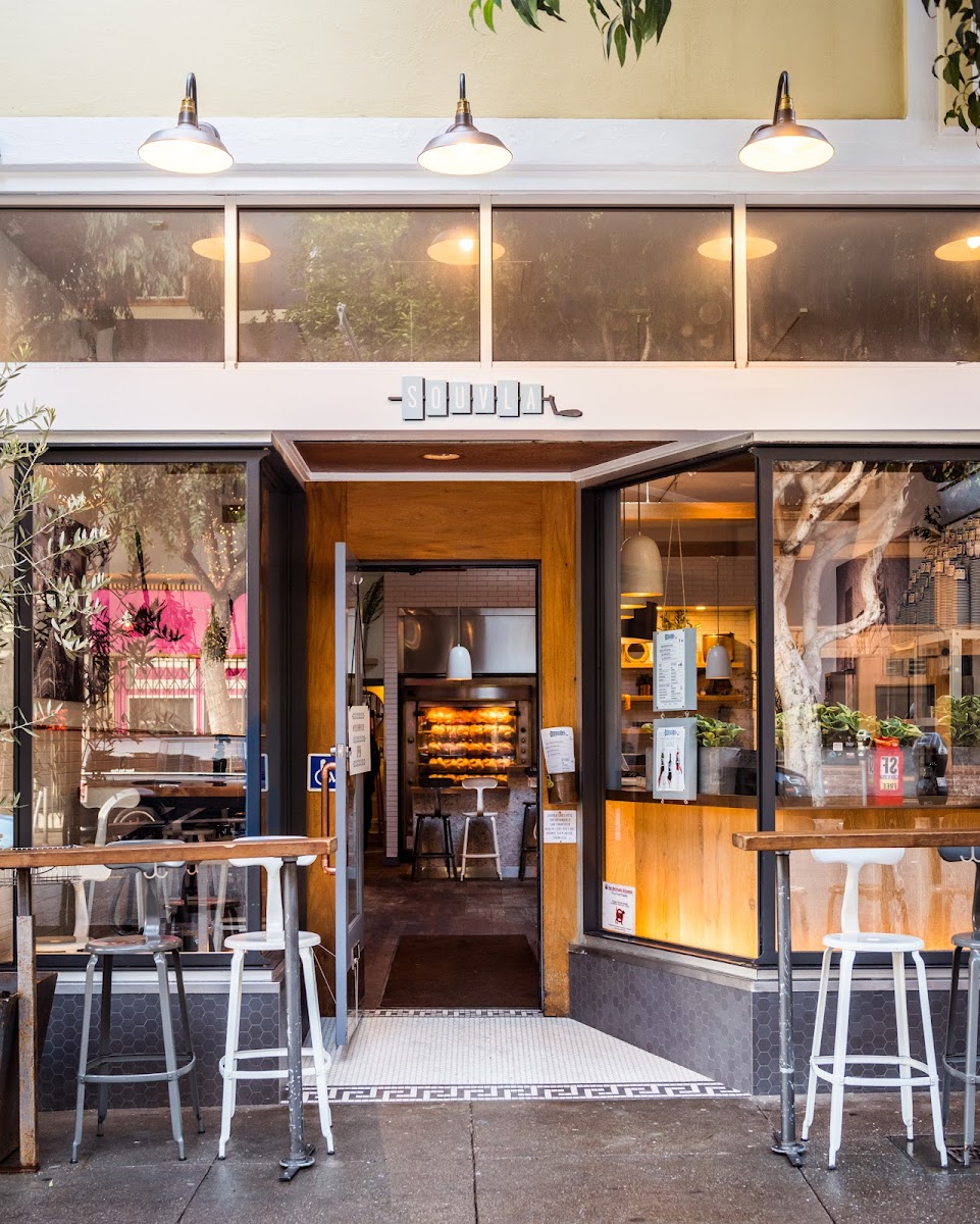 Souvla can be described as a restaurant that is solely in its own category. Even though it's quote unquote fast casual dining, Souvla seems to have an aura of a more upscale restaurant. The efficiency of the wait staff paired with the simplicity of the menu makes ordering at Souvla a breeze. First, you order at the counter, they give you a number, then you sit anywhere there's a seat open. Then the wait staff brings you the food when it's ready, you can ask to hold the dessert until you're done with your meal. We got half a rotisserie chicken, a salad, potatoes, Greek beer and Greek frozen yogurt with baklava. The overall winner of the night was the dessert, it is unlike any other yogurt we've had. The tartness of the yogurt combined with the sweetness from the baklava makes it one of a kind. My other favorite was the potatoes, soaked in the rotisserie drippings, it was tender and flavored perfectly. We will be coming back, often.