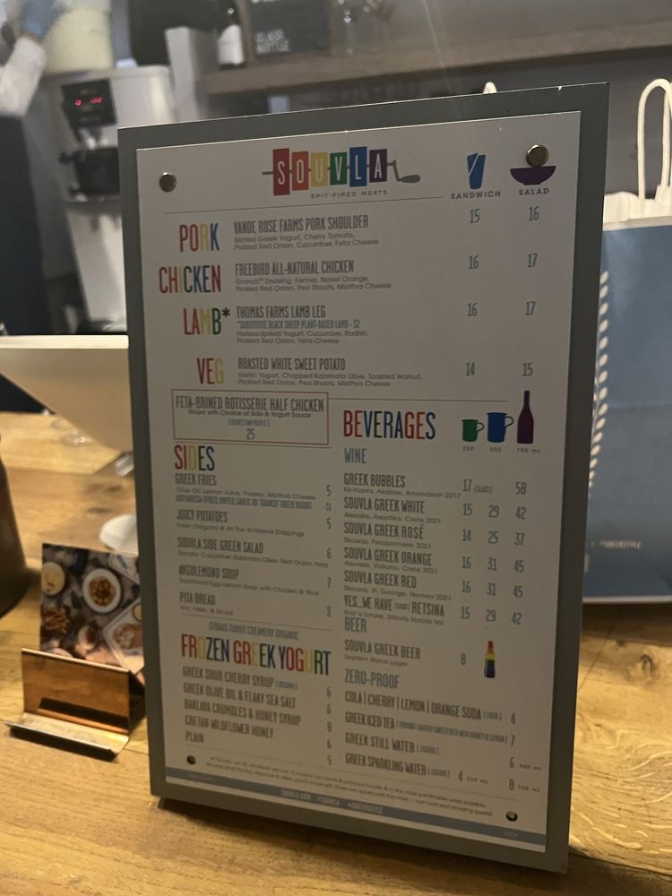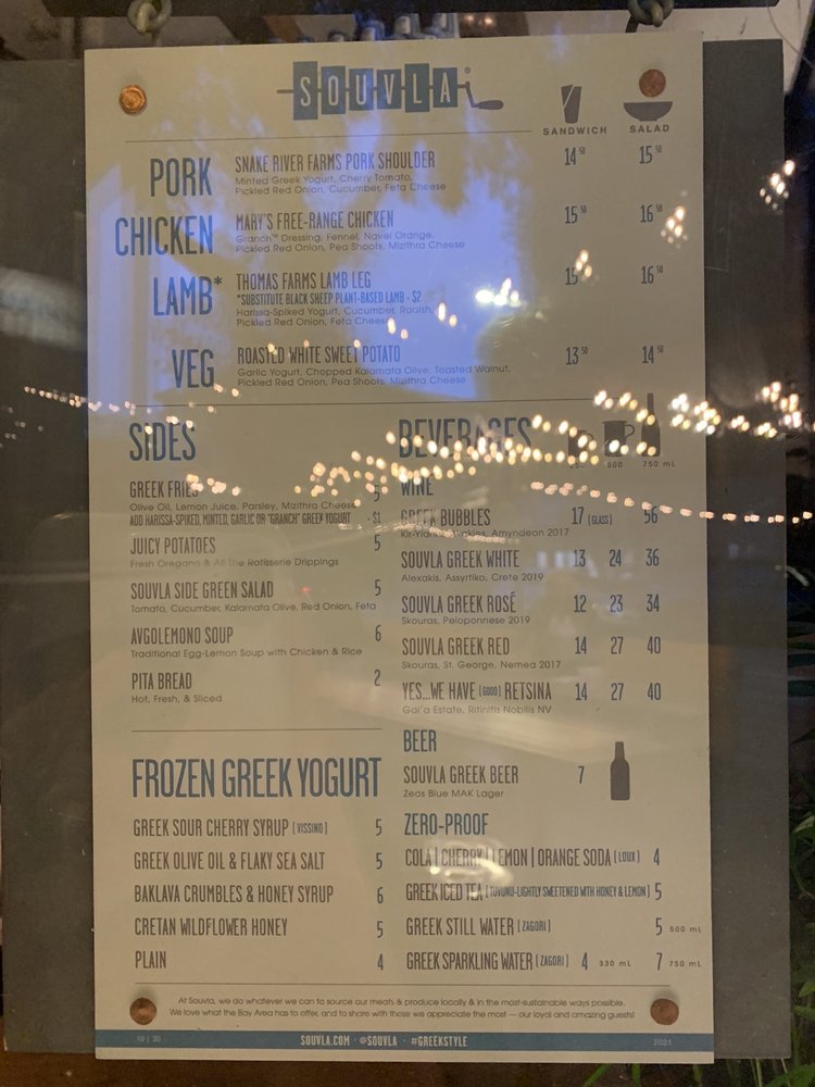 Located in San Francisco, Souvla offers a Mediterranean menu with a variety of vegan and vegetarian options. Known for their delicious frozen Greek yogurt, including flavors like Greek Olive Oil & Flaky Sea Salt and Baklava Crumbles & Syrup. Customers rave about the flavorful Juicy Potatoes and the savory Avgolemono Soup, but there have been mixed reviews on the sandwiches and fries. The ambiance at Souvla is casual yet upscale, providing a fast-casual dining experience with excellent service. With diverse options in sides, salads, sandwiches, and frozen yogurt, Souvla is a unique dining experience that appeals to a wide range of tastes. The standout dishes include their rotisserie chicken, Greek salad, and the irresistible frozen yogurt dessert. Visit Souvla for a quick and satisfying meal with a touch of sophistication.